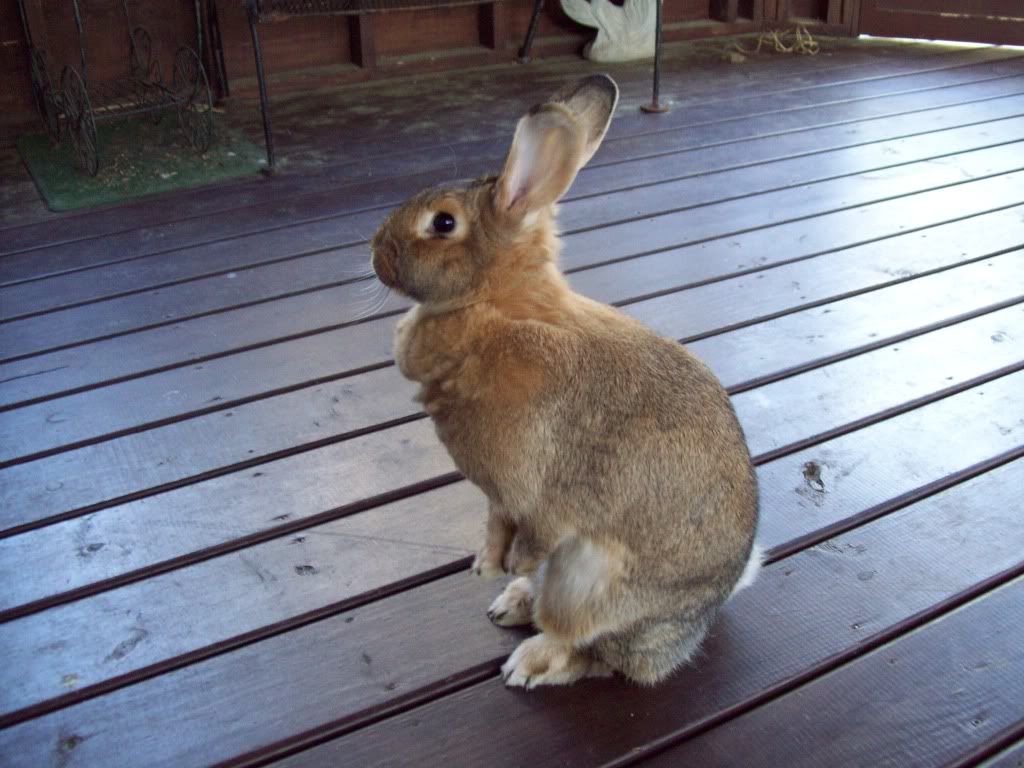 it is cloudy and rainy today.thumper is running around like her leg was never broke but she is standing up on her back legs when she stands beside us.i guess she wants to be taller.i got a pic of her.have a great day.